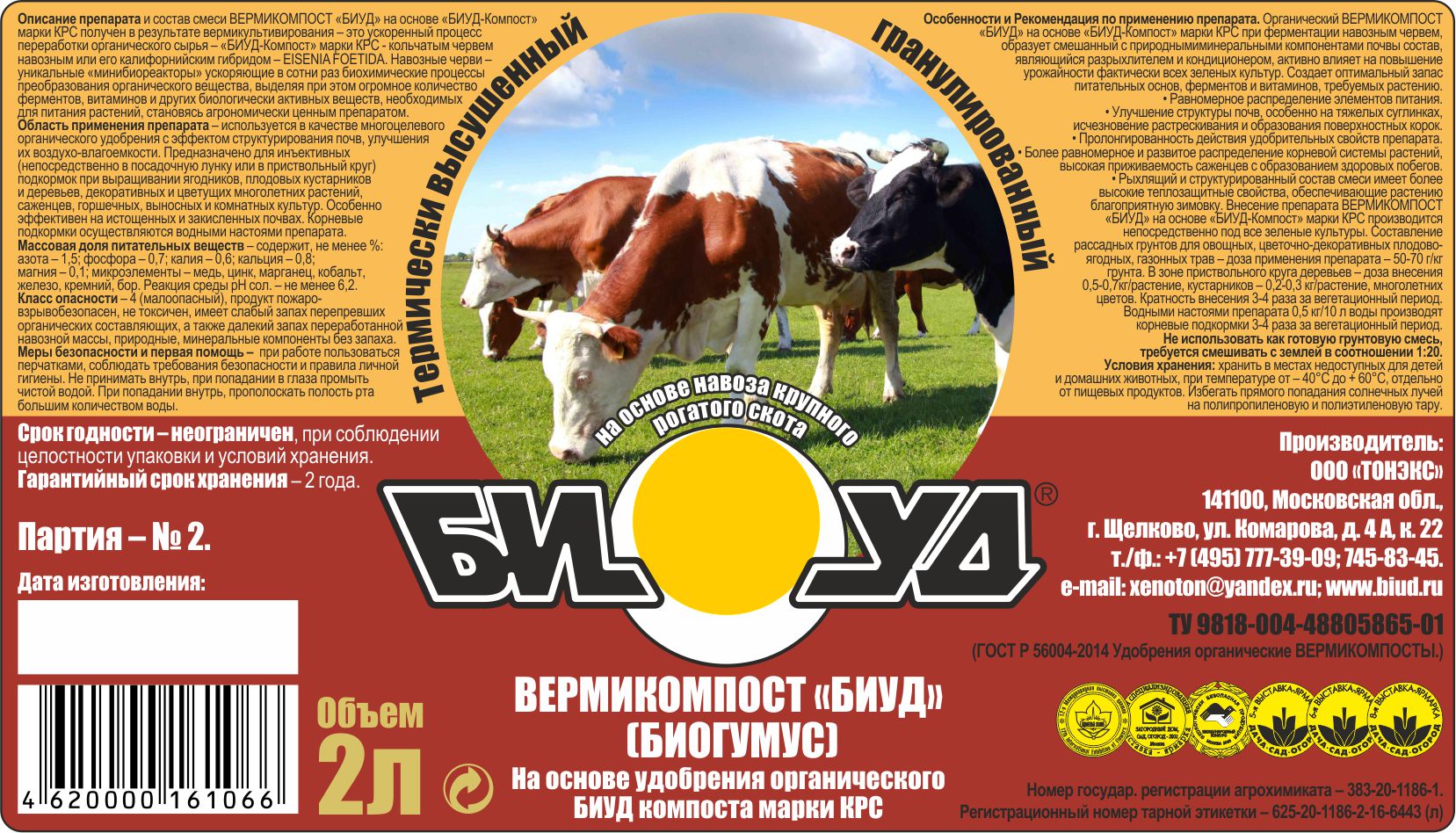 БИОГУМУС Вермикомпост КРС 2 л 16...