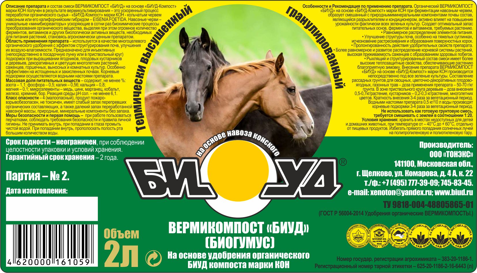 БИОГУМУС Вермикомпост КОНСКИЙ 2 л 16...